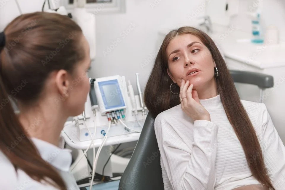 A dental patient receiving treatment with a dentist performing the procedure.